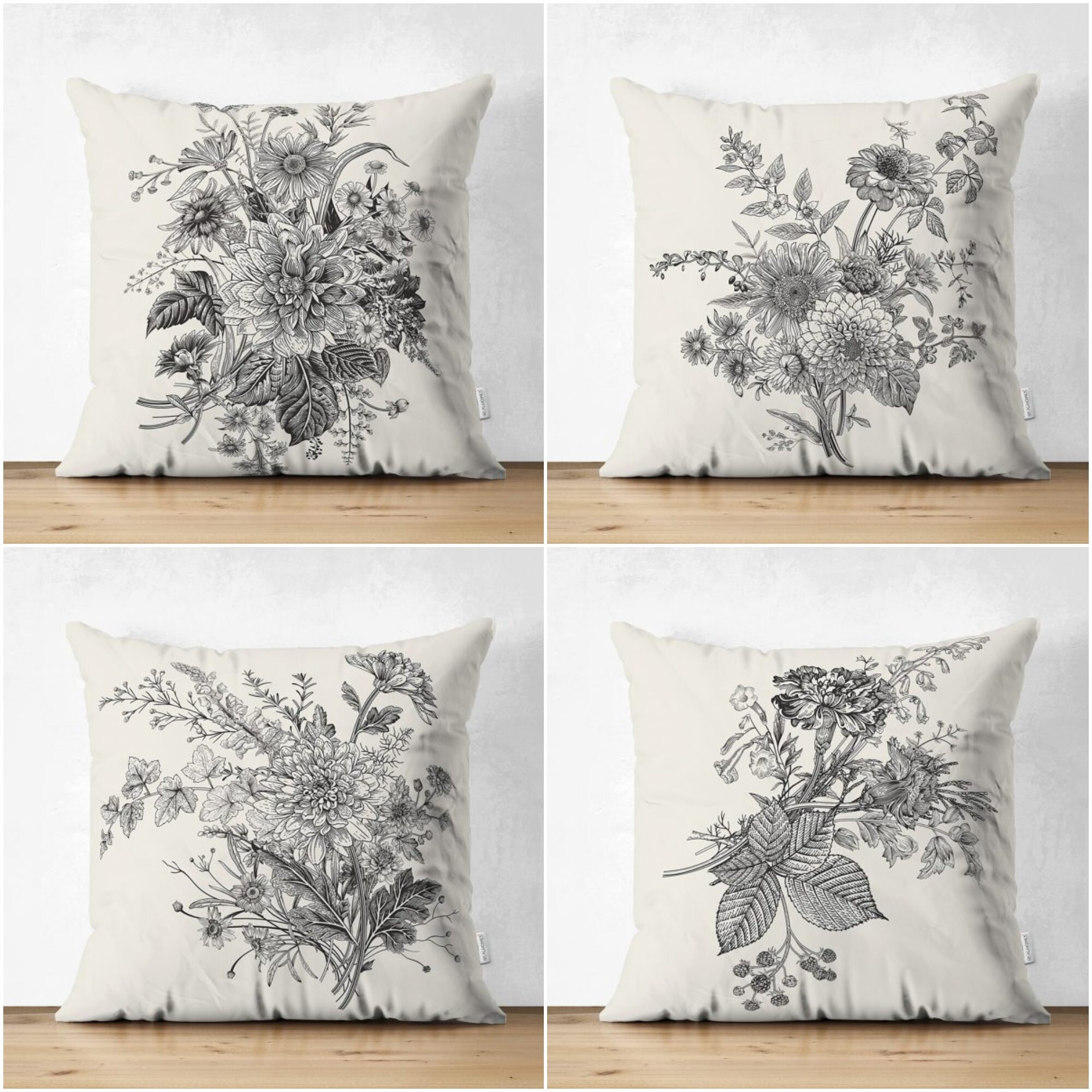 Gray Floral Pillow Coversummer Trend Cushion Casedecorative Etsy
